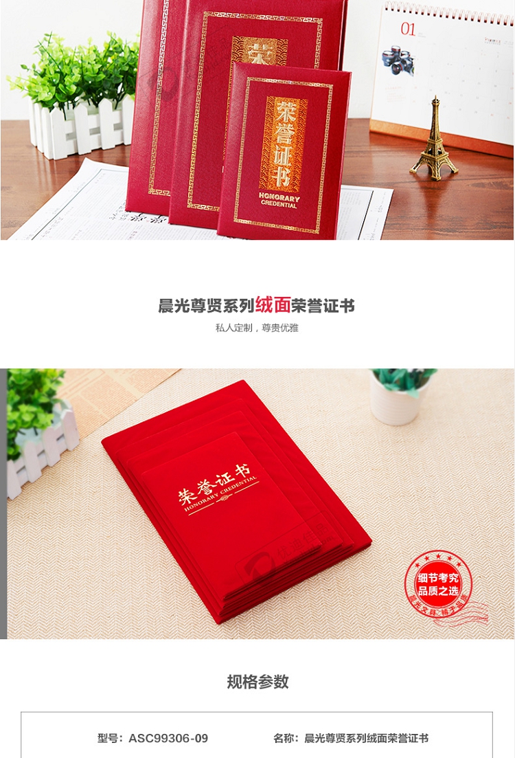 晨光(M&G) ASC99309 16K(合上尺寸130*185mm)絨面榮譽證書