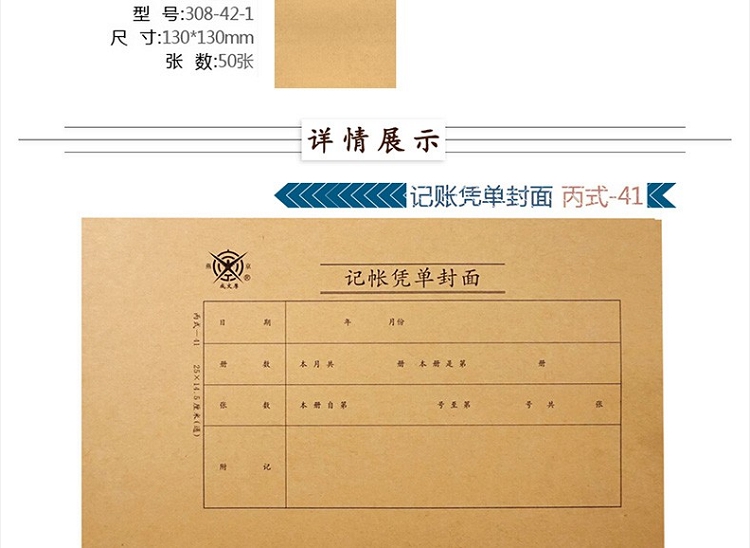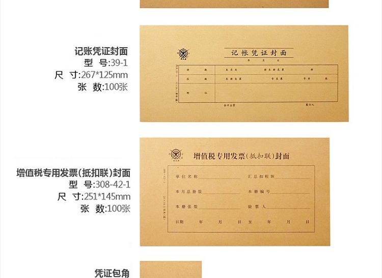 成文厚 財(cái)務(wù)用品憑證單據(jù) 記帳憑證封面丙式12.2*22.5cm 100張/包 308-40-1