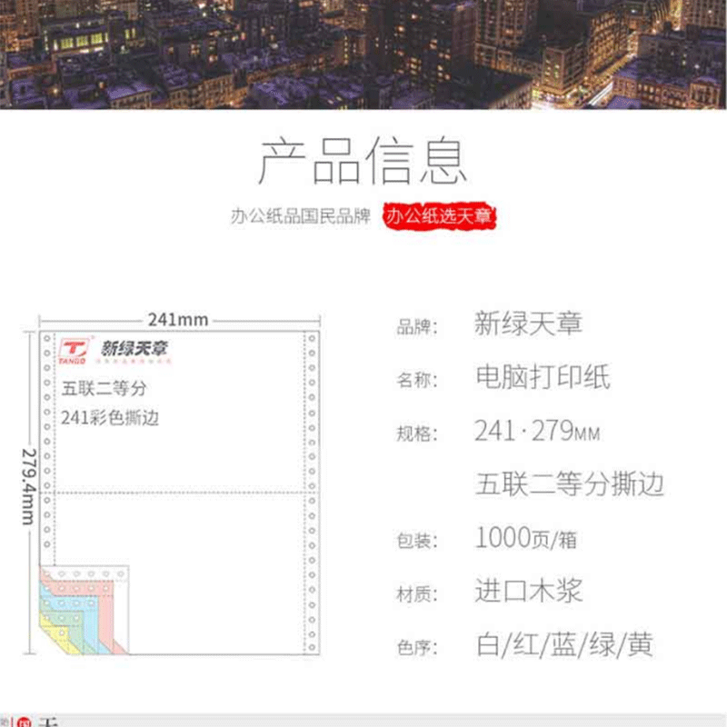 綠天章 241-4S 電腦打印紙 (色序:白紅藍(lán)黃 1200頁(yè)/箱(四聯(lián)二等分撕邊)