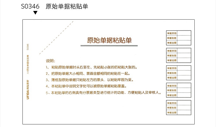 用友(UFIDA) S0346 /A4單據(jù)原始粘貼單 208*127mm 5本/包 50頁/本