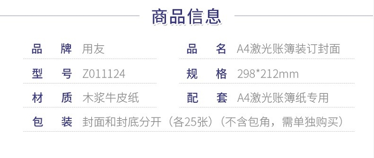 用友(UFIDA) Z011124 A4激光賬簿封面298*212mm 25套/包