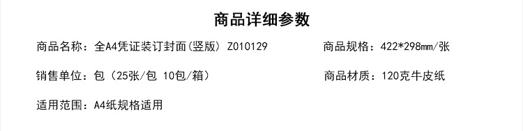 用友(UFIDA) Z010129 全A4憑證封面(豎版) 配套裝訂憑證封皮 422*298mm 25份/包