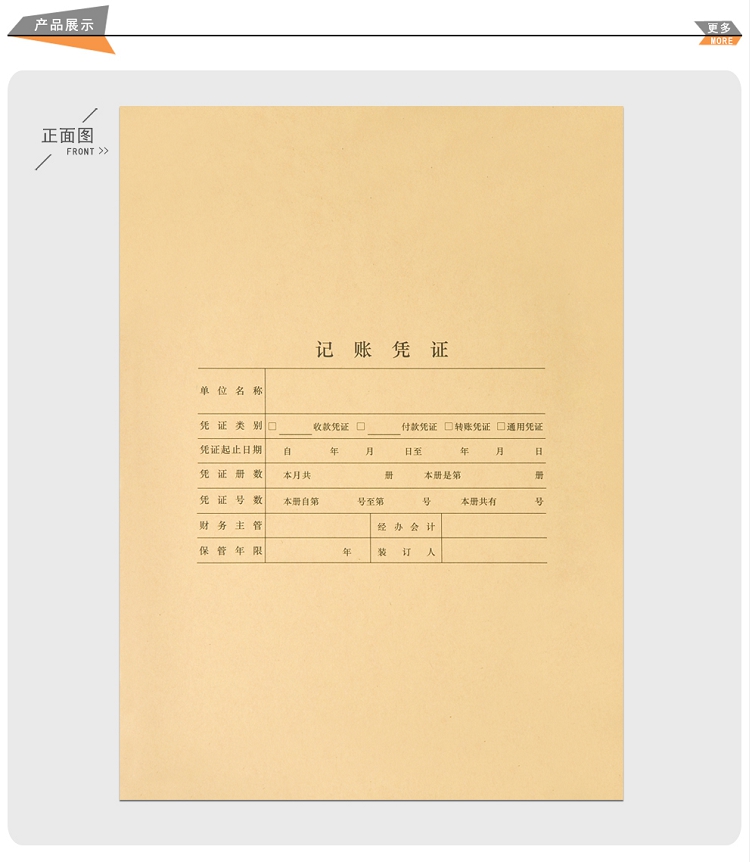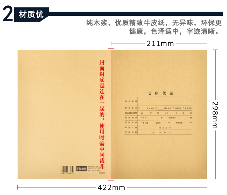 成文厚 財務(wù)用品憑證單據(jù) 記帳憑證封面丙式12.2*22.5cm 100張/包 308-40-1