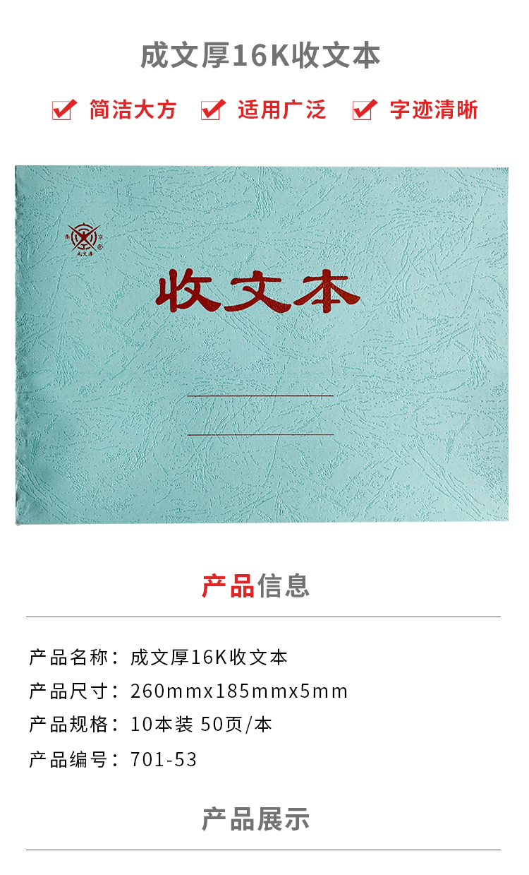 成文厚 701-54 發(fā)文本16K(18.6*26cm)50頁/本