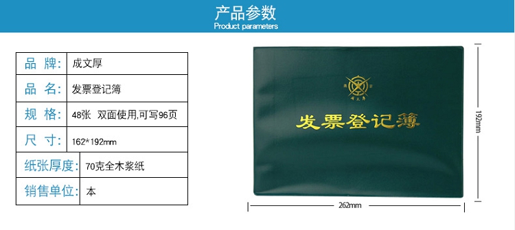 成文厚 101-9 發(fā)票登記本記錄簿16K(262*192mm)100頁/本