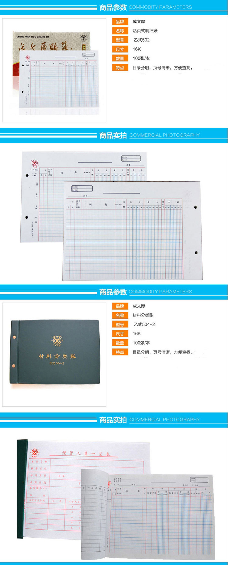 成文厚 202-47 A4賬皮 賬簿裝訂夾(270*190mm)藍(lán)色橫向