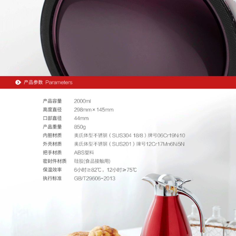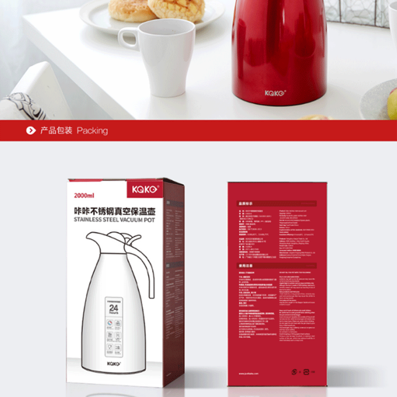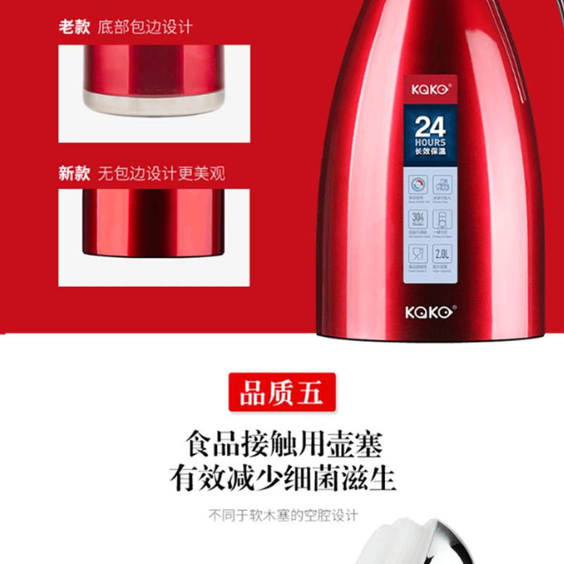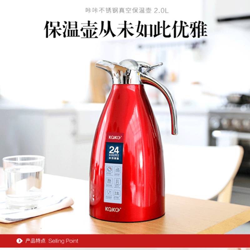 咔咔 KSC-2000-3 保溫壺家用暖壺大容量水壺?zé)崴繗W式暖瓶開水瓶保溫瓶2L 保暖壺咖啡壺(石榴紅)
