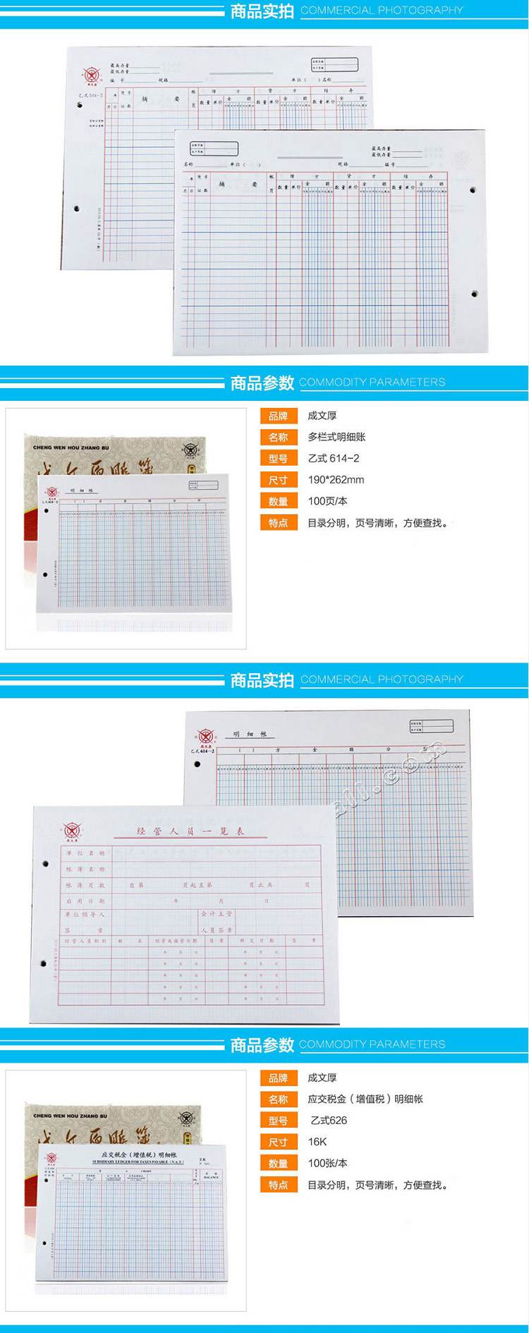 成文厚 202-47 A4賬皮 賬簿裝訂夾(270*190mm)藍(lán)色橫向