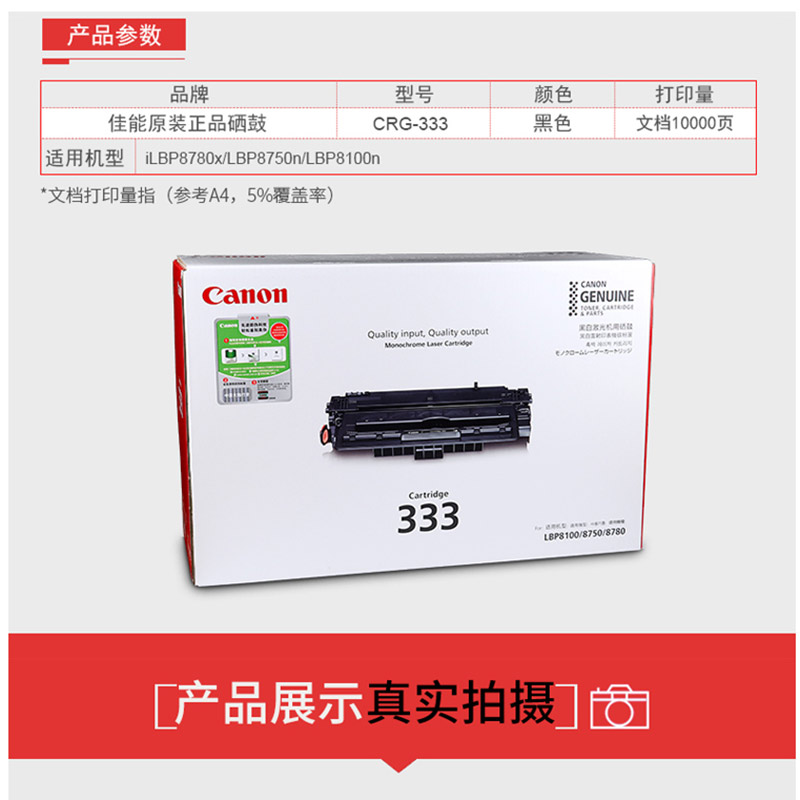 佳能(Canon) CRG 333 黑白打印機硒鼓 黑色