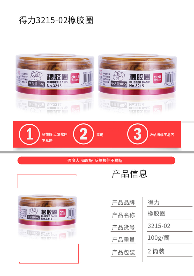得力(deli) 3215 橡皮筋 乳膠圈 筒裝 100g