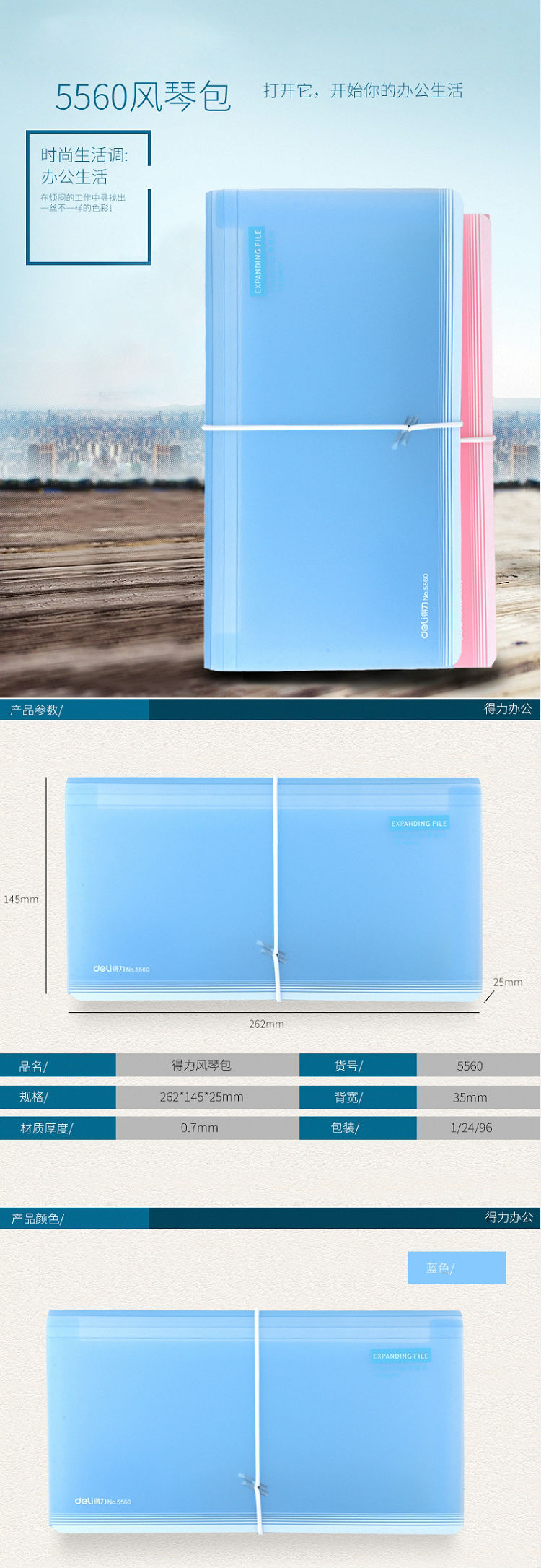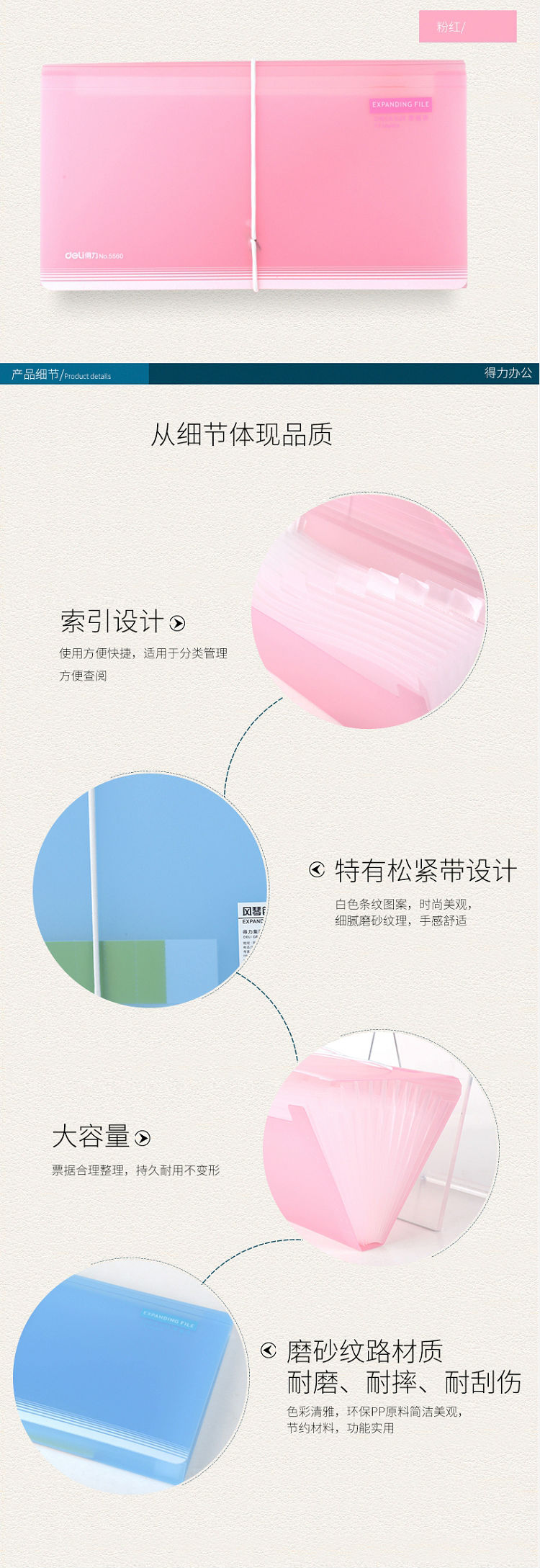 得力(deli) 5560 帶索引標簽票據(jù)包/風琴包 顏色隨機