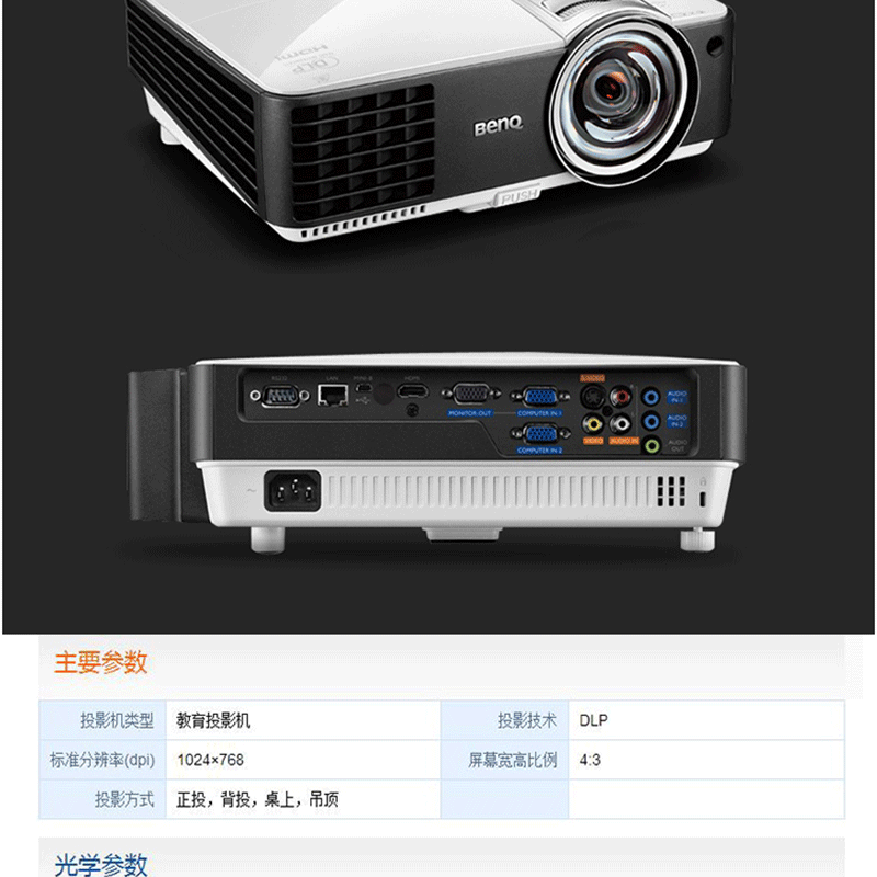 明基(BenQ) DX806ST 辦公短焦投影儀(DLP芯片 3200流明 XGA分辨率 HDMI)(臺(tái))