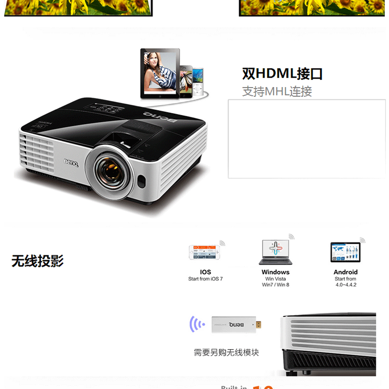 1.5m短距離內(nèi)投射出80寸大畫面,3200流明亮度及13000:1高對比度