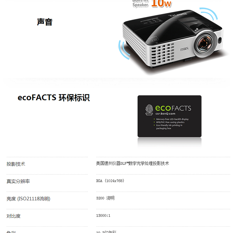 明基(BenQ) DX806ST 辦公短焦投影儀(DLP芯片 3200流明 XGA分辨率 HDMI)(臺)