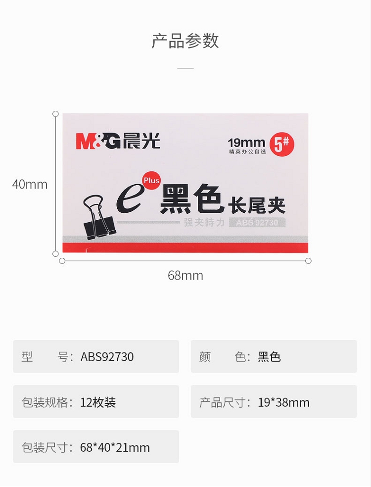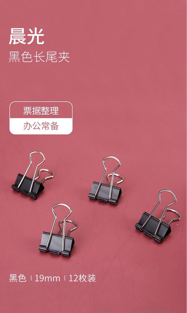 晨光(M&G) Eplus 長尾夾/長尾夾票夾 黑色(5# ABS92730/19mm 12枚/盒)