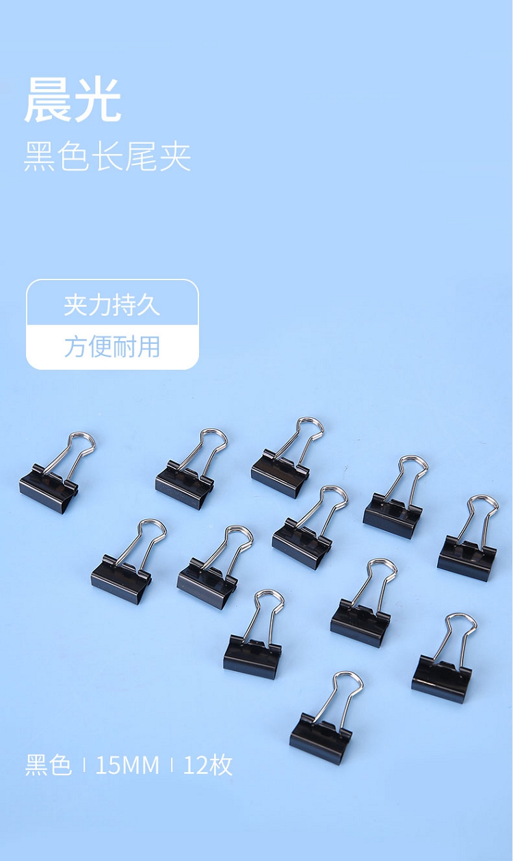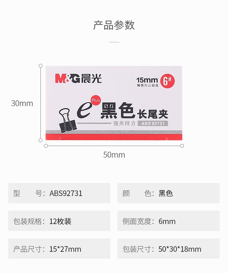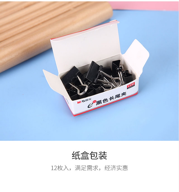 晨光(M&G) Eplus 長尾夾/長尾夾票夾 黑色(6# ABS92731/15mm 12枚/盒)