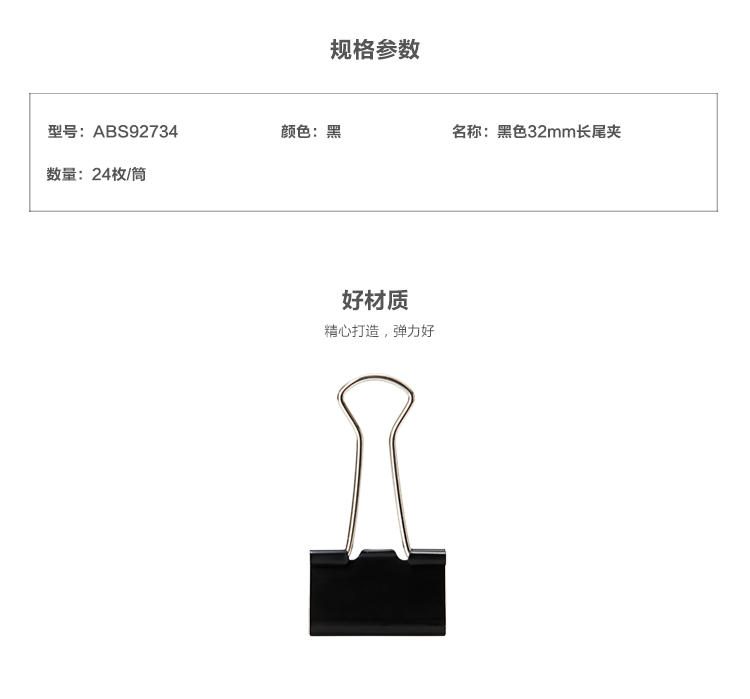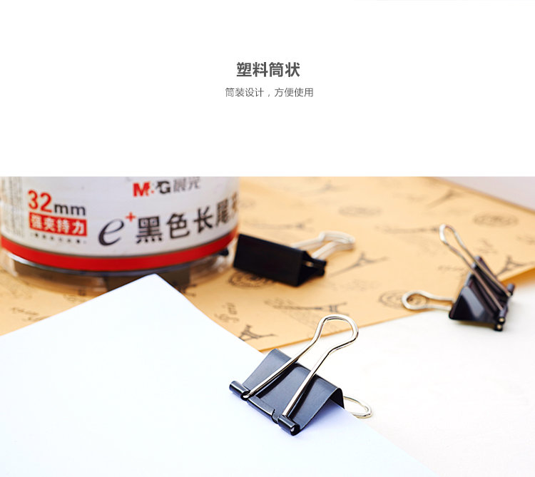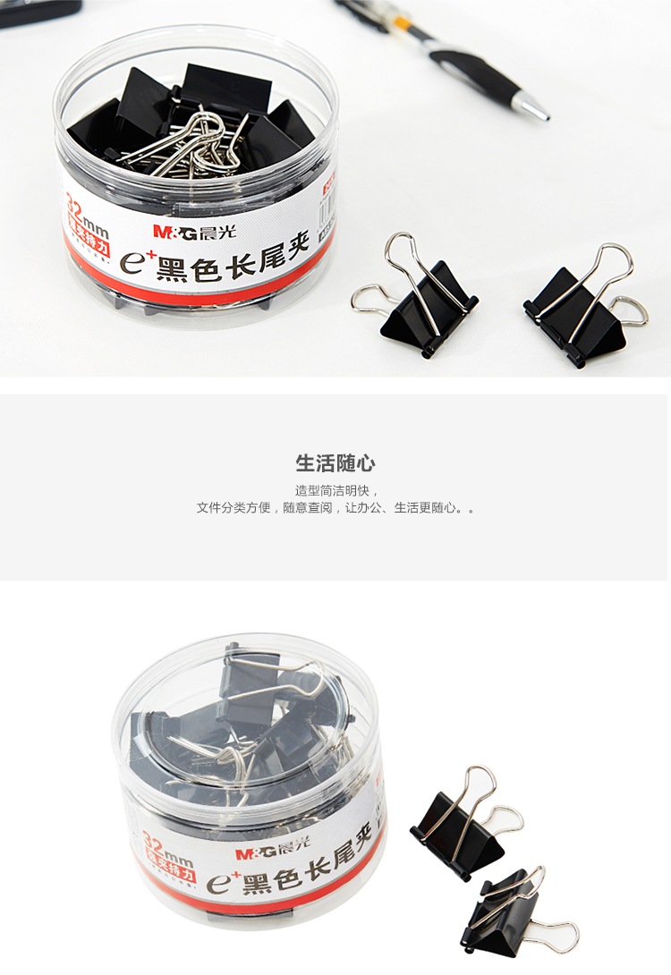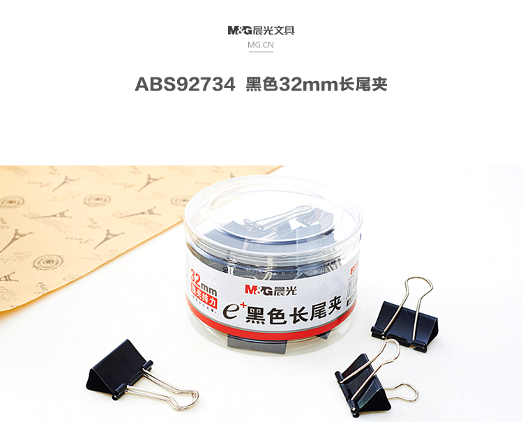 晨光(M&G) Eplus 長尾夾/長尾夾票夾 黑色( 3#ABS92734/32MM 24枚/筒)