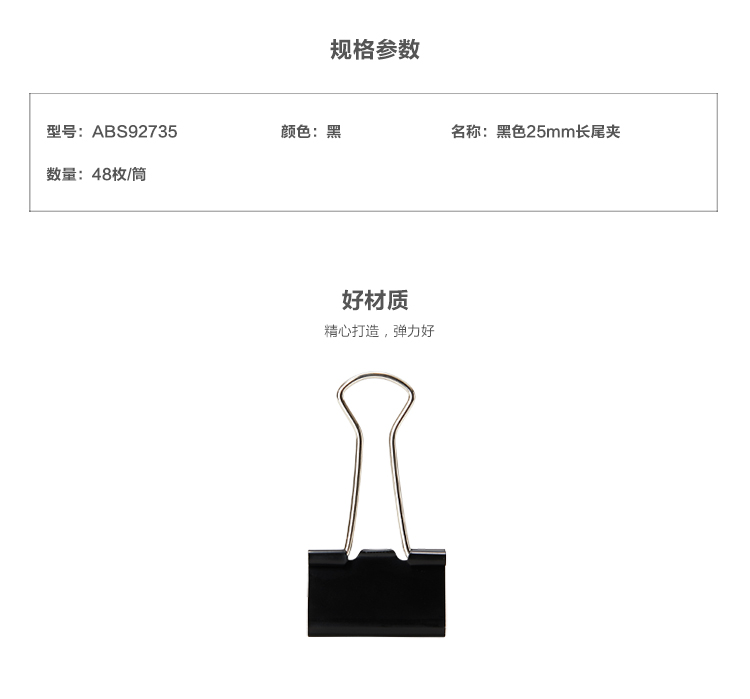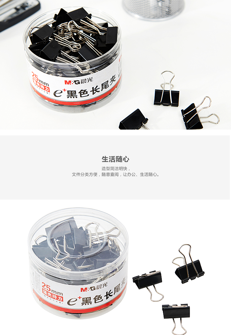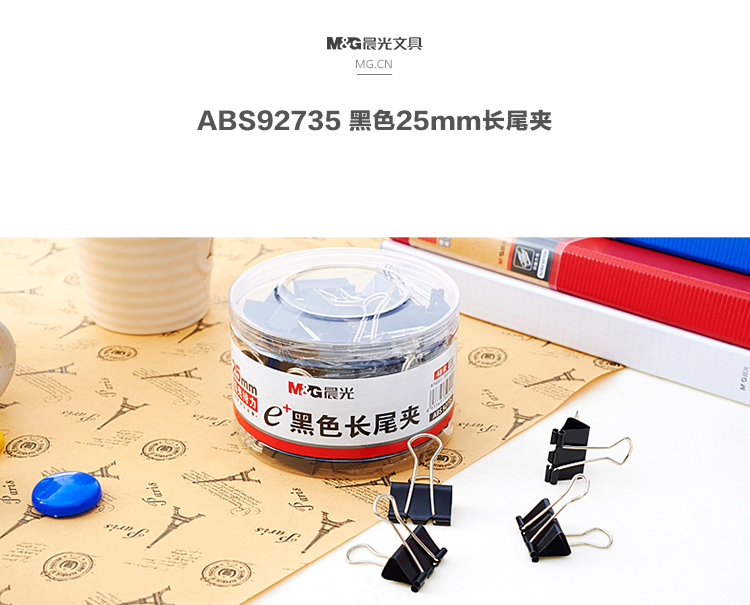 晨光(M&G) Eplus 長尾夾/長尾夾票夾 黑色(4#ABS92735/25MM 48枚/筒)
