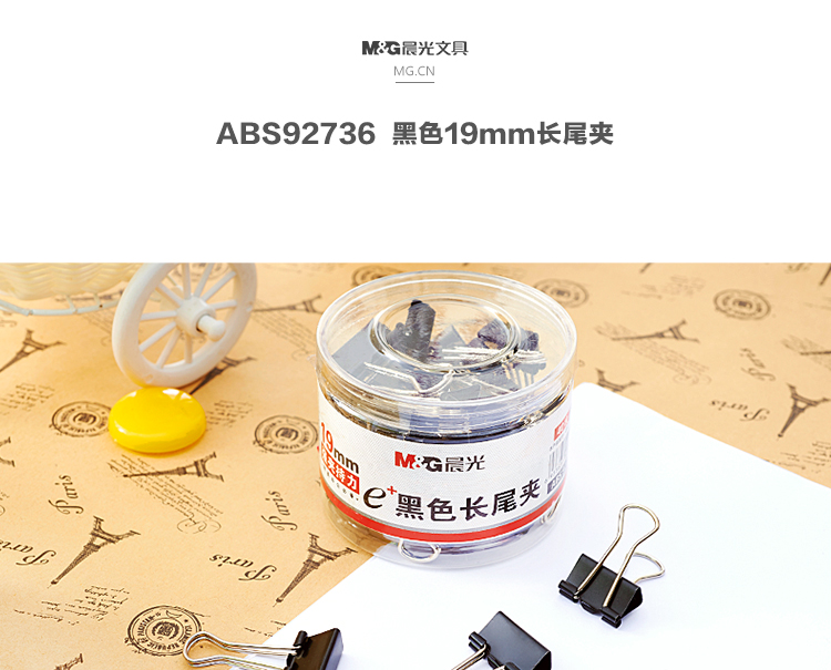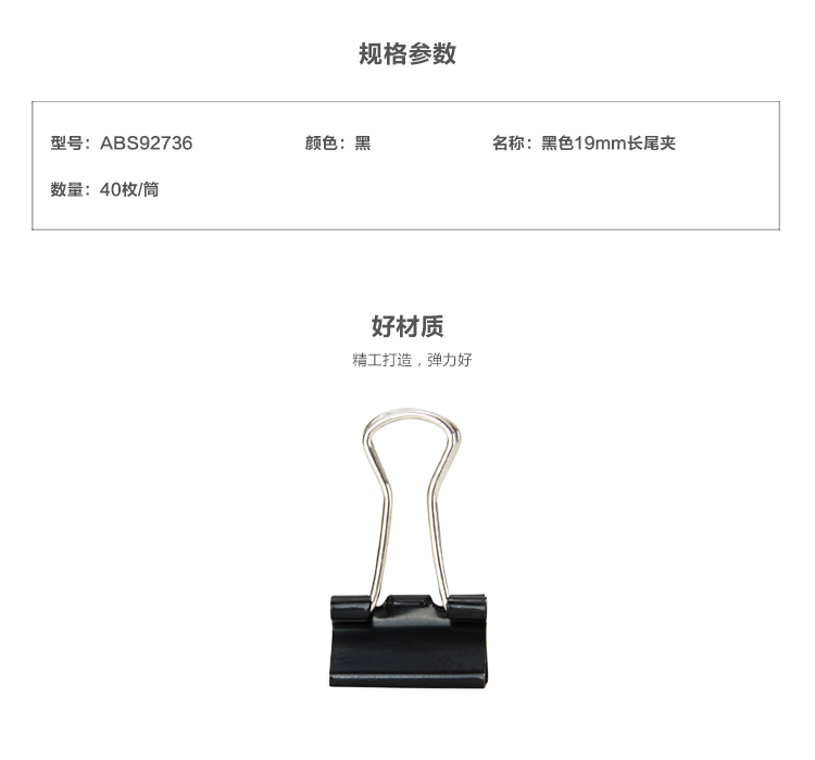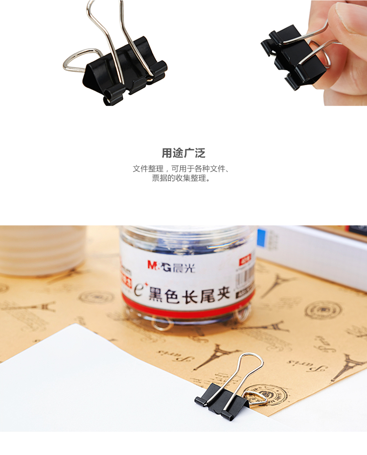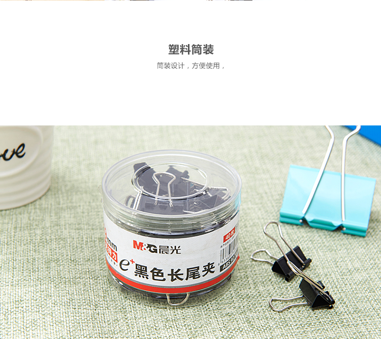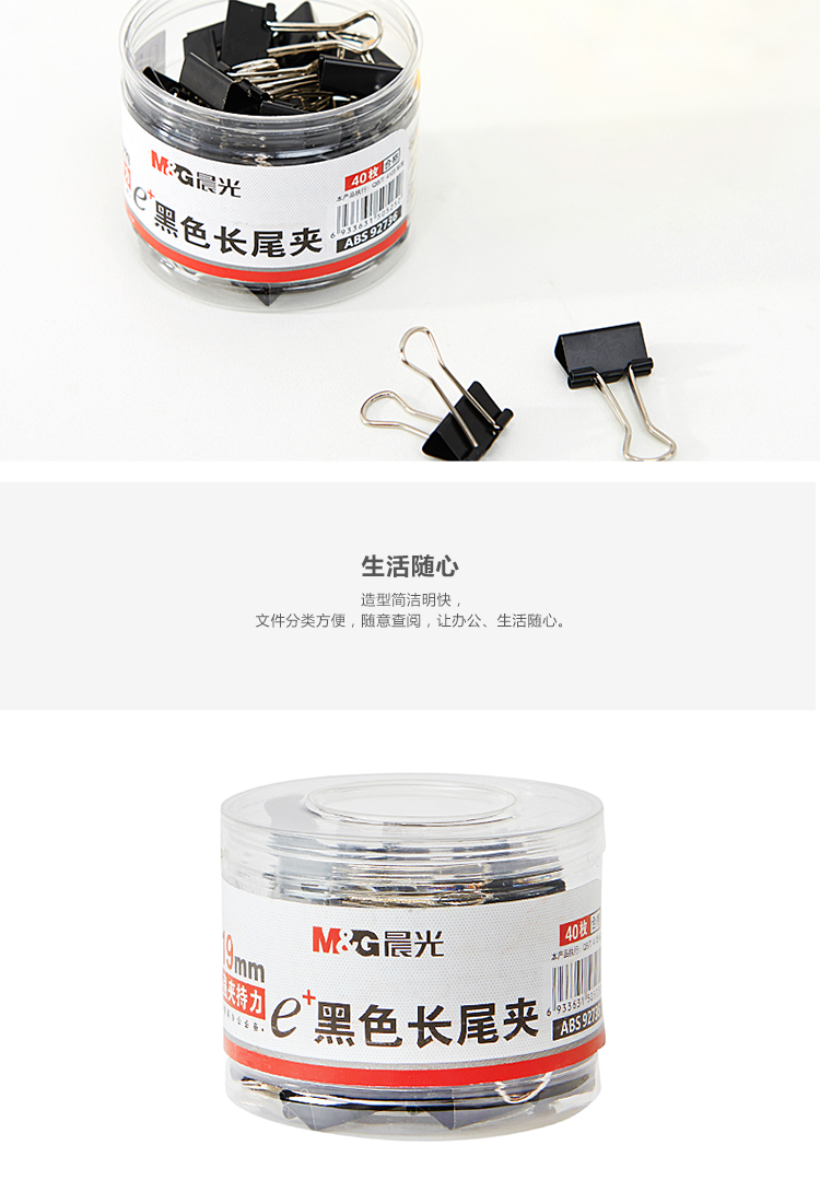晨光(M&G) Eplus 長(zhǎng)尾夾/長(zhǎng)尾夾票夾 黑色( 5#ABS92736/19MM 40枚/筒)