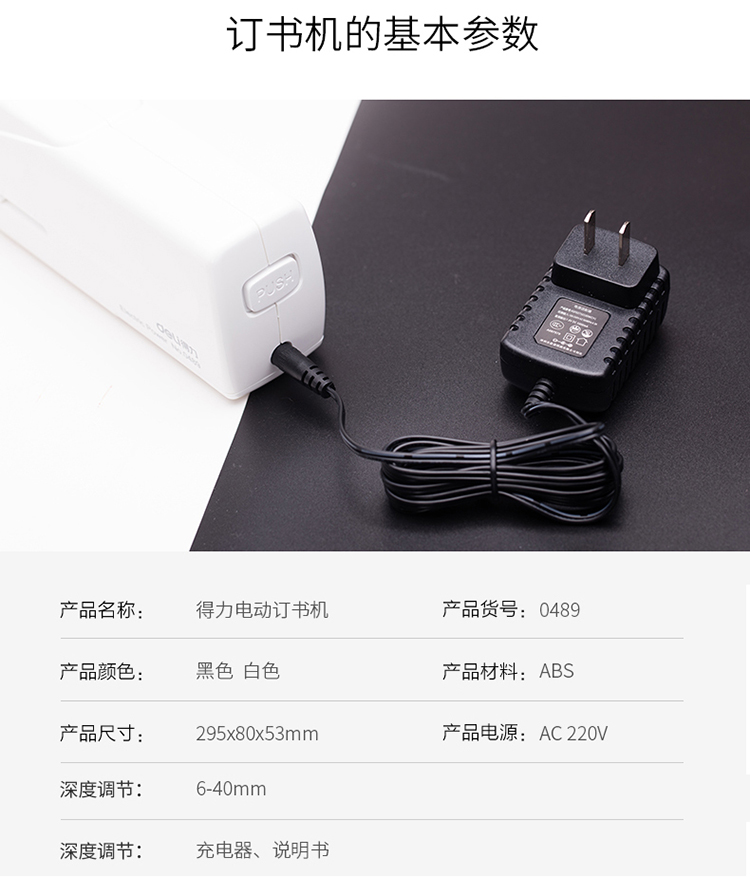 得力(deli)雙電源電動訂書機 適配24/6或26/6訂書釘 辦公用品 白色 TA750