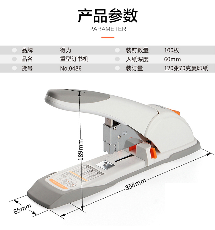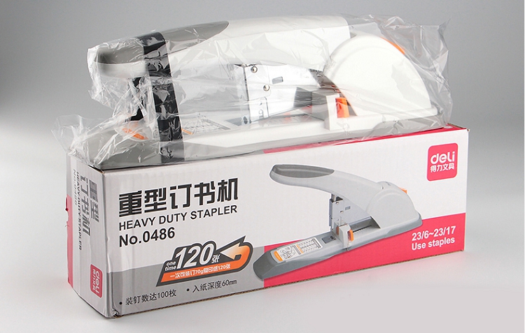 得力(deli) 0486 重型厚層訂書機(jī)120張(236-2317)白色
