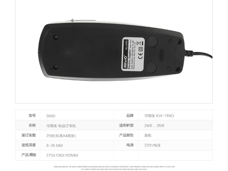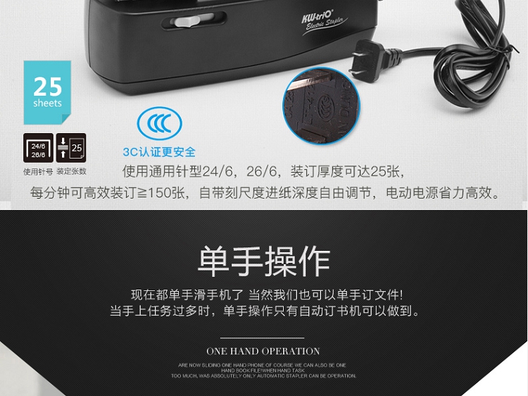 可得優(yōu)(KW-triO) 5990 12# 智能感應(yīng)電動(dòng)自動(dòng)訂書(shū)機(jī)釘針可訂25頁(yè)