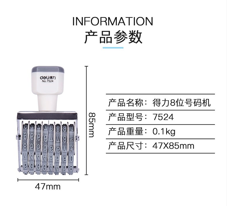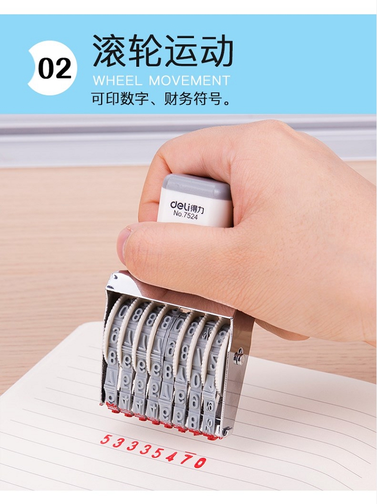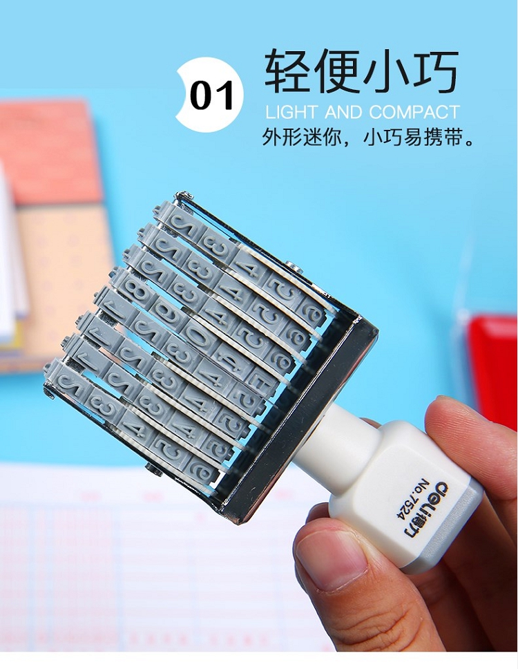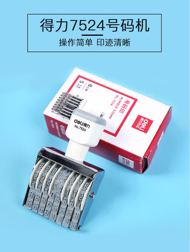 得力(deli) 7524 8位可調(diào)節(jié)號(hào)碼數(shù)字組合印章編號(hào)日期價(jià)格轉(zhuǎn)輪印 白色