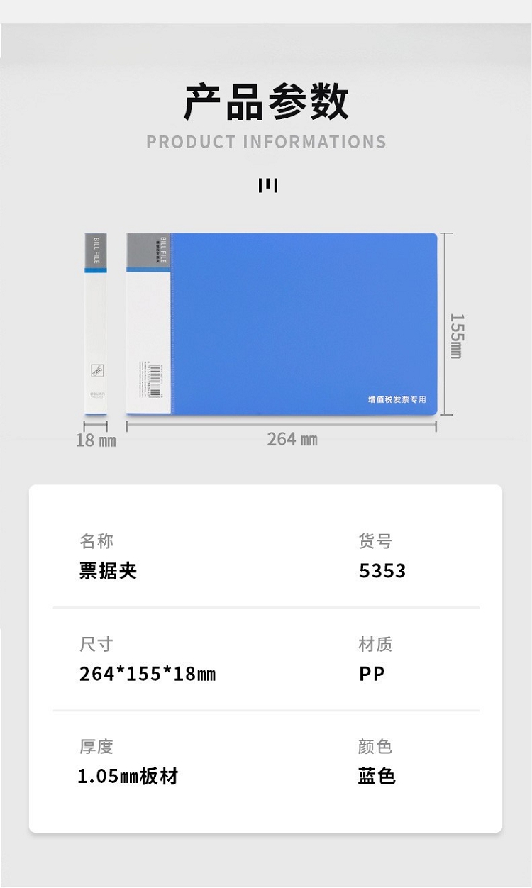 得力(deli) 5353 A6票據(jù)夾發(fā)票夾藍(lán)色(小號(hào)(124x230mm))