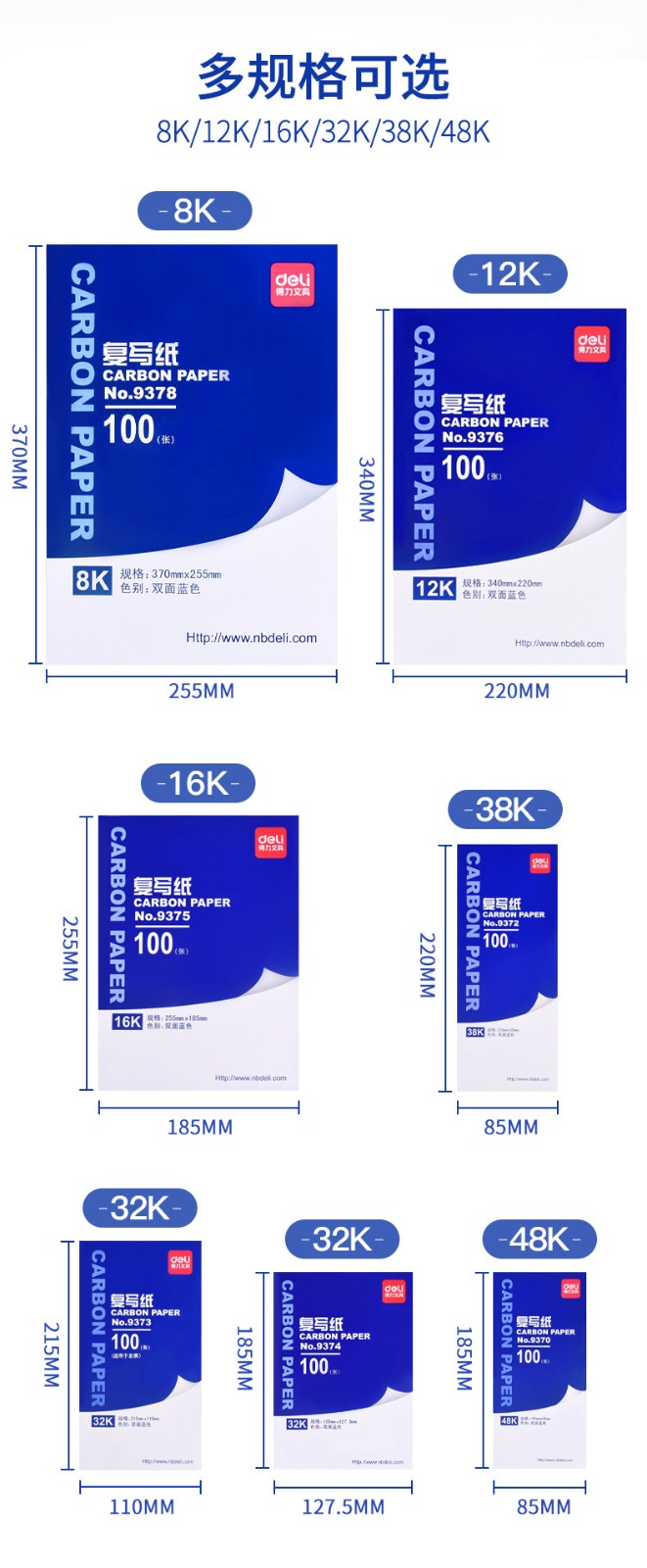 得力(deli) 9370 經(jīng)濟耐用薄型復寫紙(18.5×8.5)48K 藍色