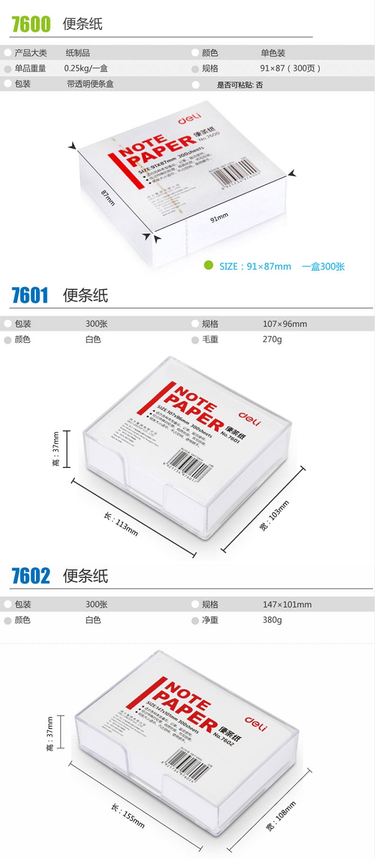得力(deli) 7602 便簽紙/便條紙(帶盒)147×101mm