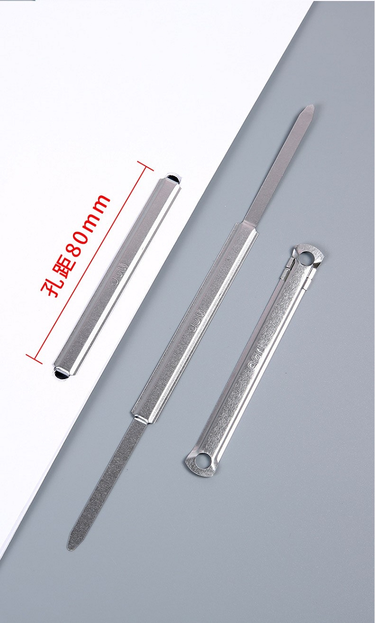 兩孔打孔機打孔后,用夾子穿過兩孔,固定起來