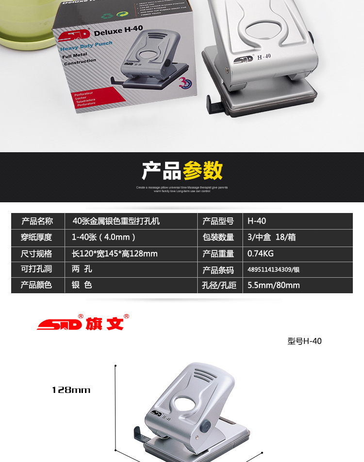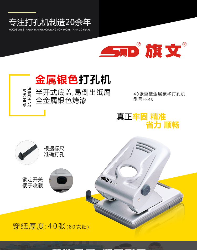 旗文(STD) H-40 金屬兩孔打孔機器孔打機 可打40張