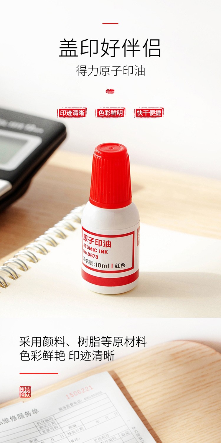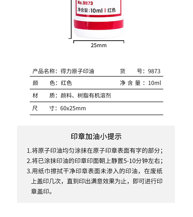 得力(deli) 9873 原子快干印油 印泥 10ml(紅色)