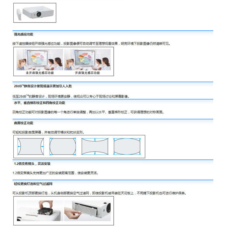 水平:±15°(手動(dòng)) 投影方式 正投/背投,桌面/吊頂
