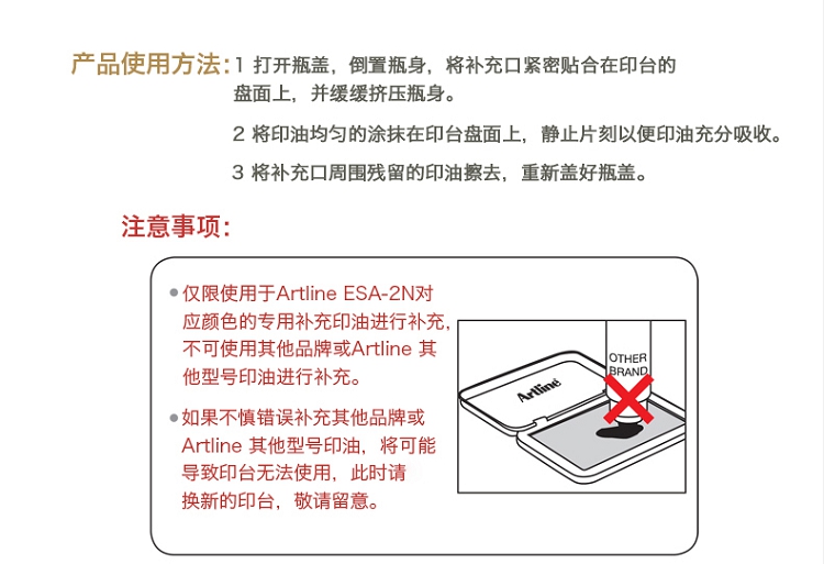 旗牌(Artline) 雅麗ESA-2N 辦公印臺(tái)補(bǔ)充印油50ml(紅色)