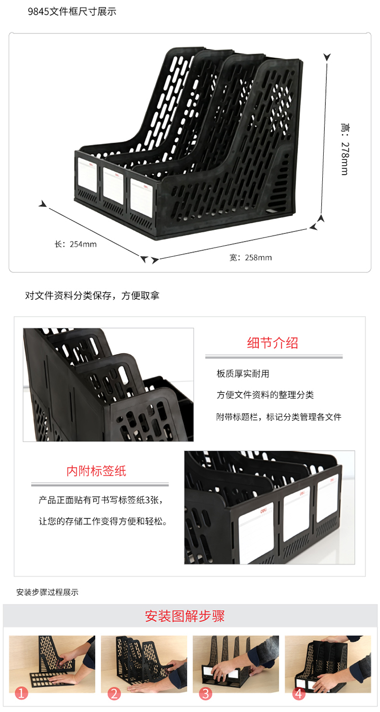 得力(deli) 9846 穩(wěn)固耐用 四聯(lián)文件框(黑色)