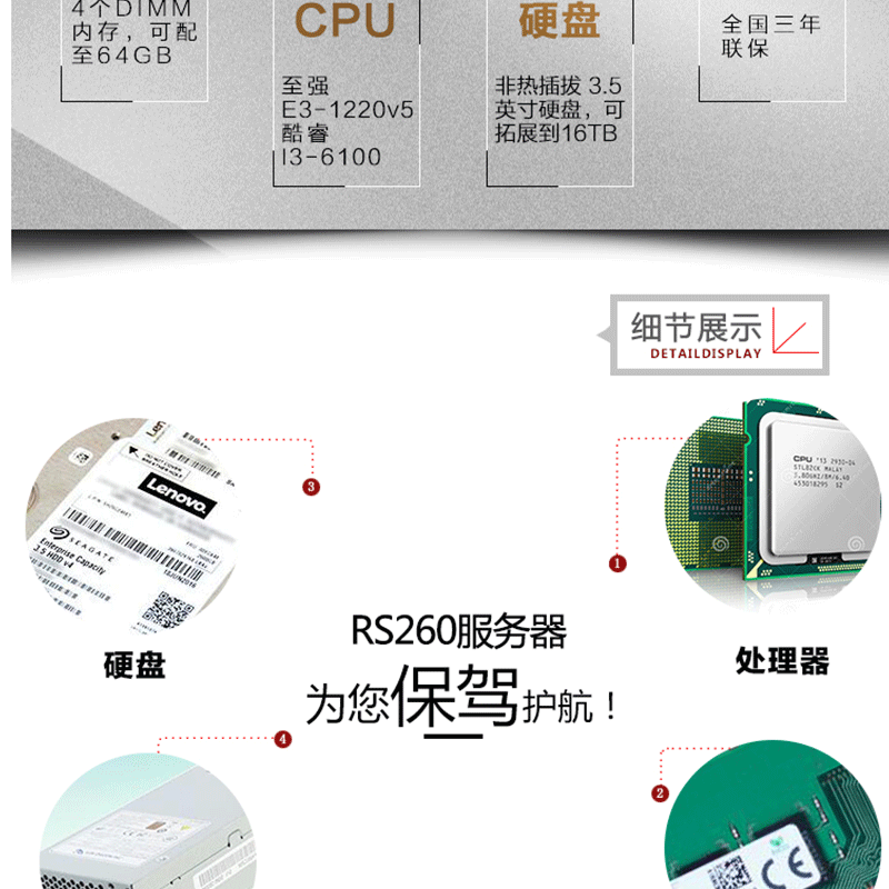 聯(lián)想(ThinkServer) RS260(i3 6100) 1路1U機架式服務(wù)器主機 8GB/1T/DVD