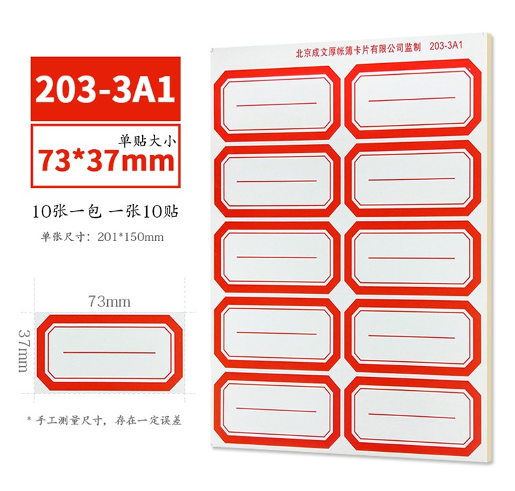 成文厚 口取紙 不干膠標簽紙 口曲紙 10張/包(203-2A1 紅色)