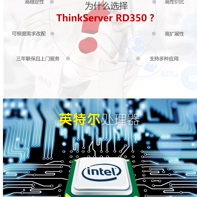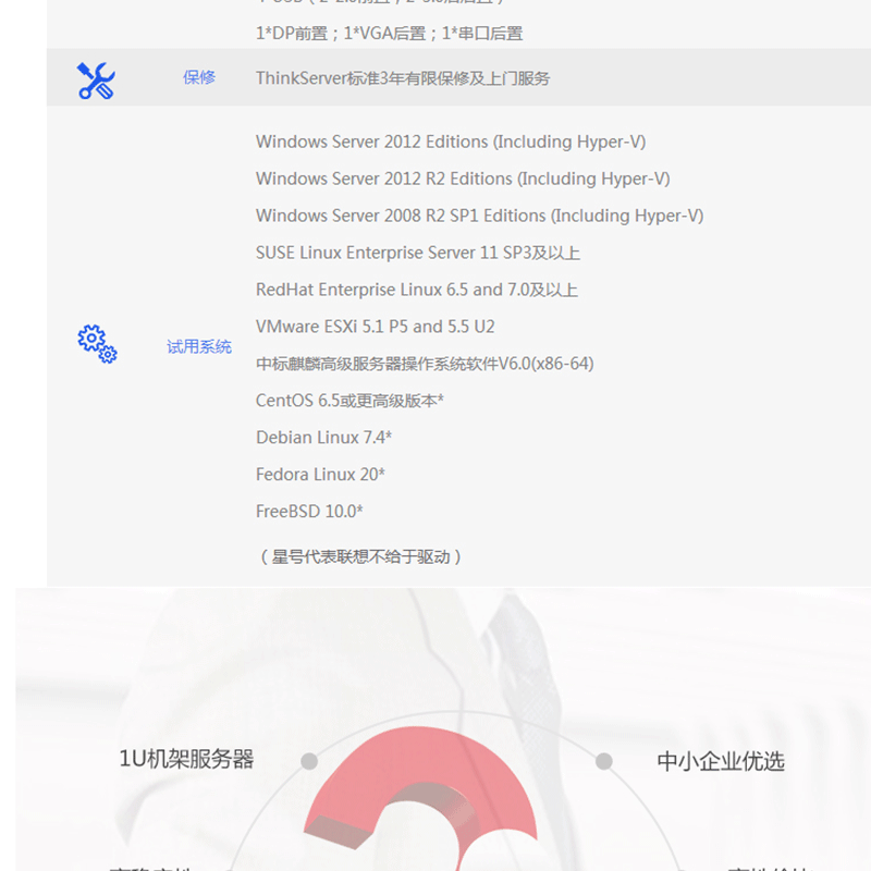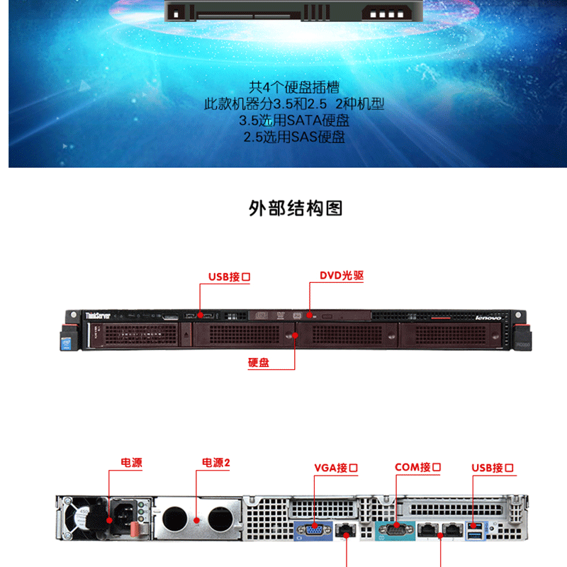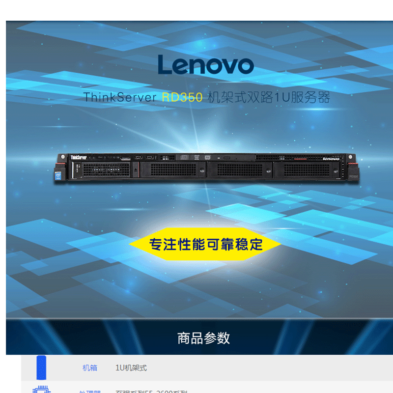 聯(lián)想(ThinkServer) RD350 2路1U機架式服務(wù)器主機 (E5-2603V4)8GB/2T/DVD
