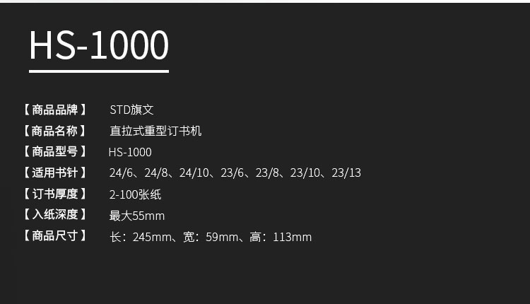 旗文(STD) HS-1000 按鍵式訂書(shū)機(jī) 加厚重型訂書(shū)器 可訂100頁(yè)