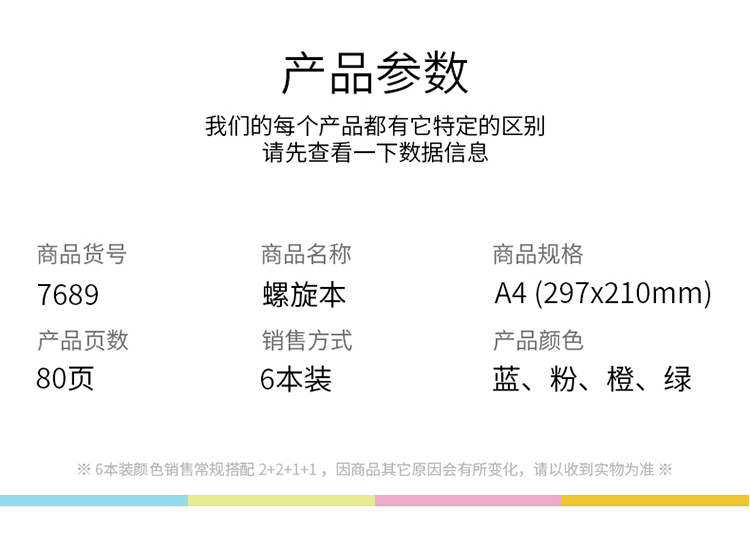 得力(deli) 螺旋裝訂本 記事本(7689 A4/80頁(yè) 6本/包)