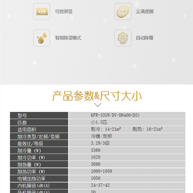 美的(Midea) 小1.5匹KFR-32GW/DY-DH400(D3) 省電星 壁掛式空調掛機
