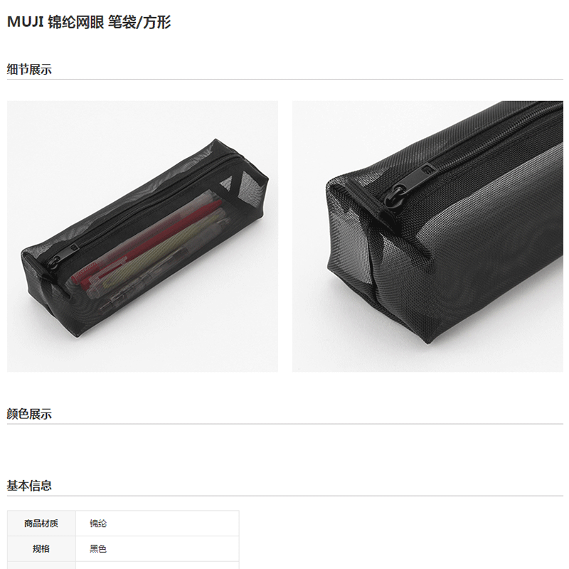 無印良品 MUJI 錦綸網(wǎng)眼 筆袋/方形