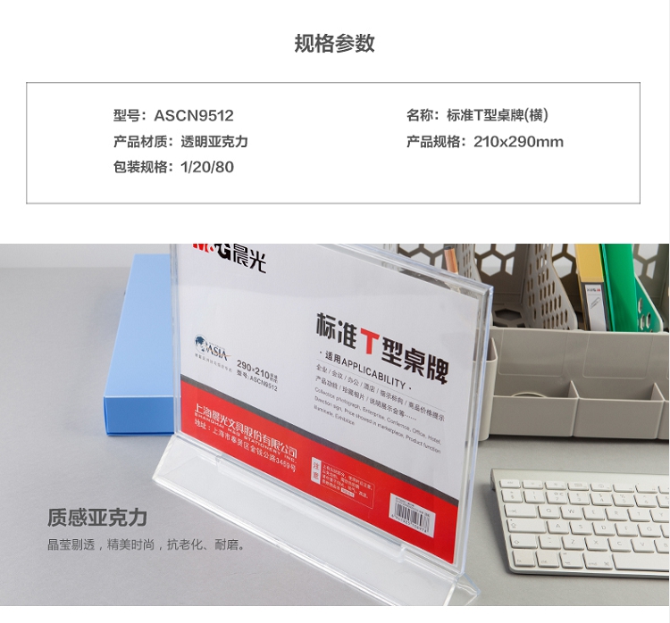 晨光(M&G) ASCN9512 標(biāo)準(zhǔn)T型會(huì)議桌牌210*290mm橫