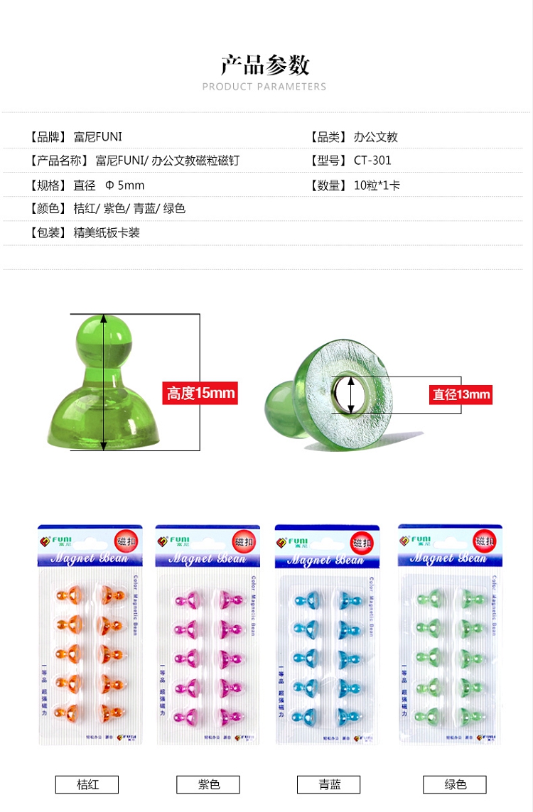 富尼 CT-301 白板磁扣 圓形強力磁粒/磁珠/磁扣/磁片 14mm 10個裝
