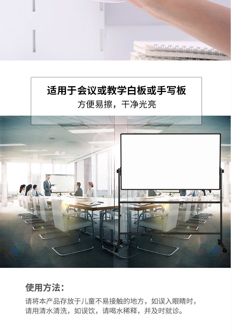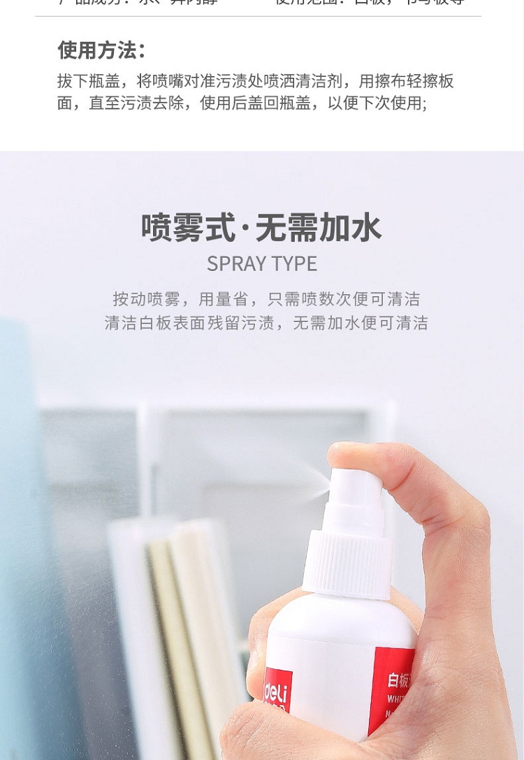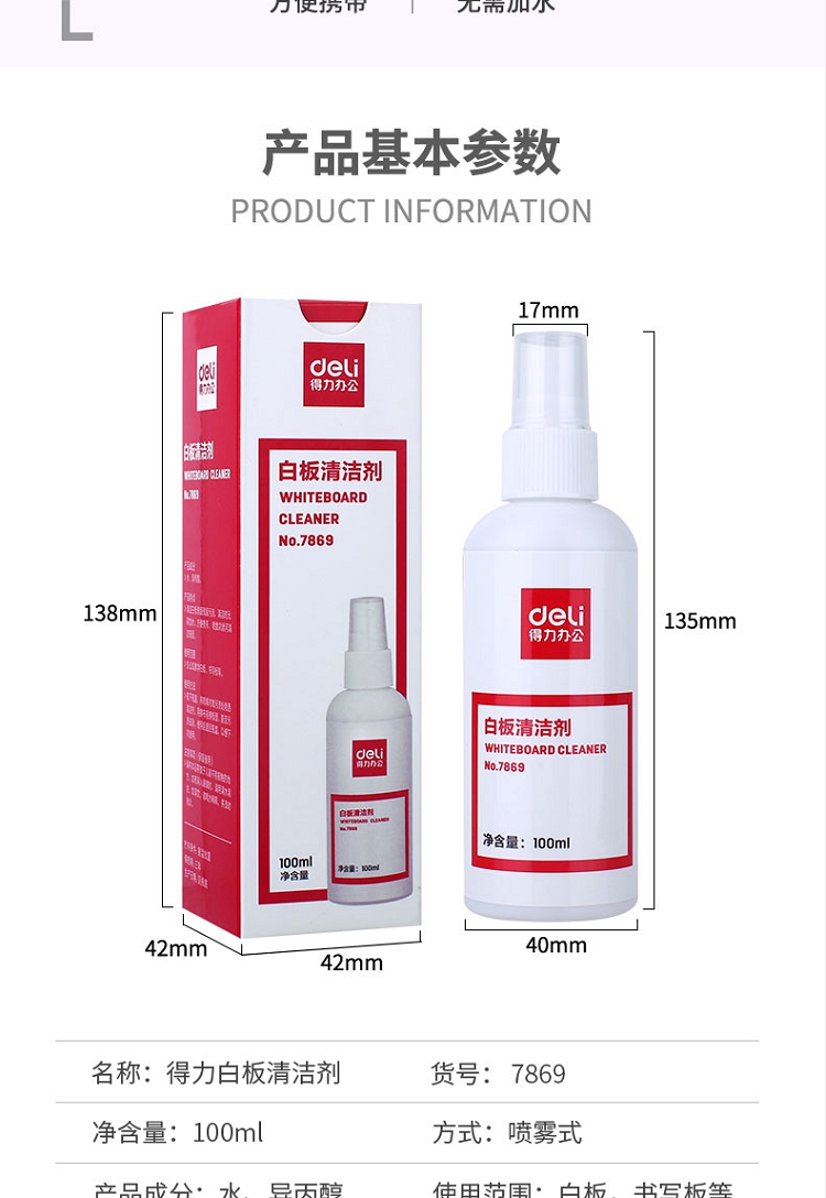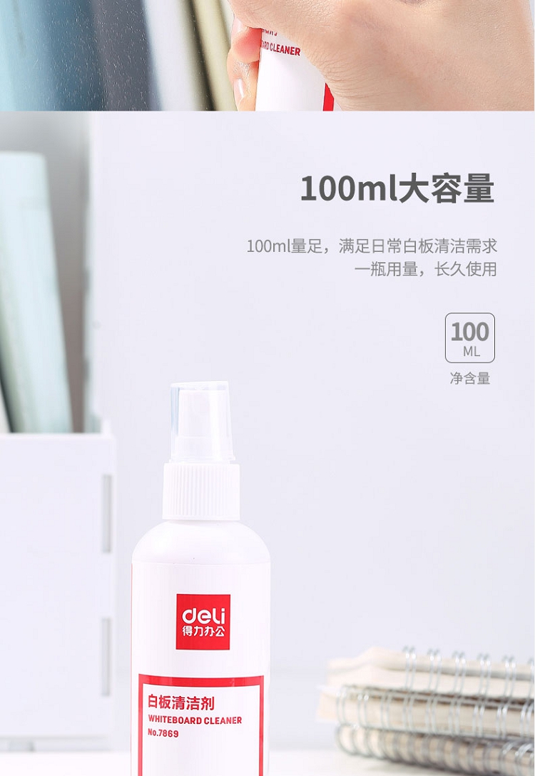 得力(deli) 7859 白板、黑板、綠板清潔劑附贈白板清潔巾