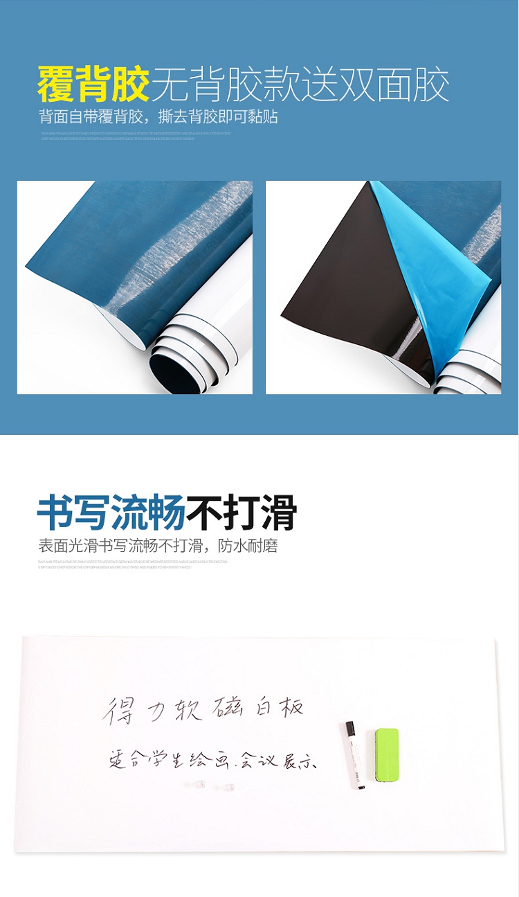 得力(deli) 8718 磁性軟白板墻貼掛式辦公家用軟鐵白板0.5*900*2000mm(帶膠)