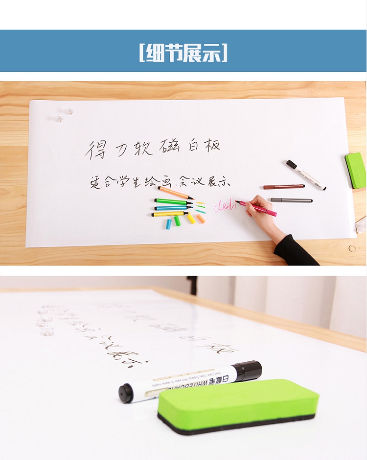 得力(deli) 8710 磁性軟白板墻貼掛式辦公家用軟鐵白板0.6*450*1000mm(無膠)