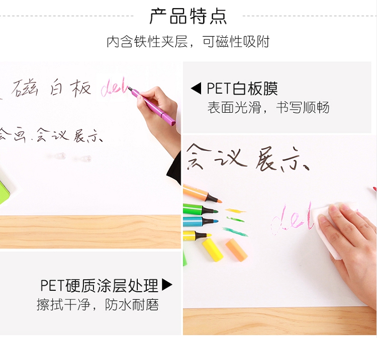 得力(deli) 8719 磁性軟白板墻貼掛式辦公家用軟鐵白板0.6*600*900mm(無膠)