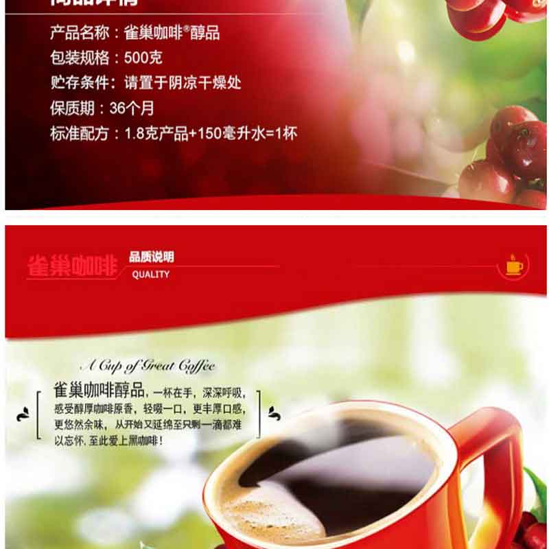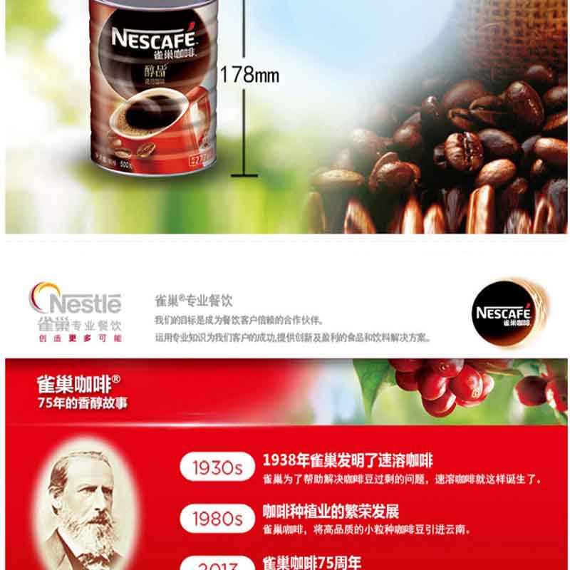 雀巢(Nestle) 500g 咖啡醇品黑咖啡罐裝